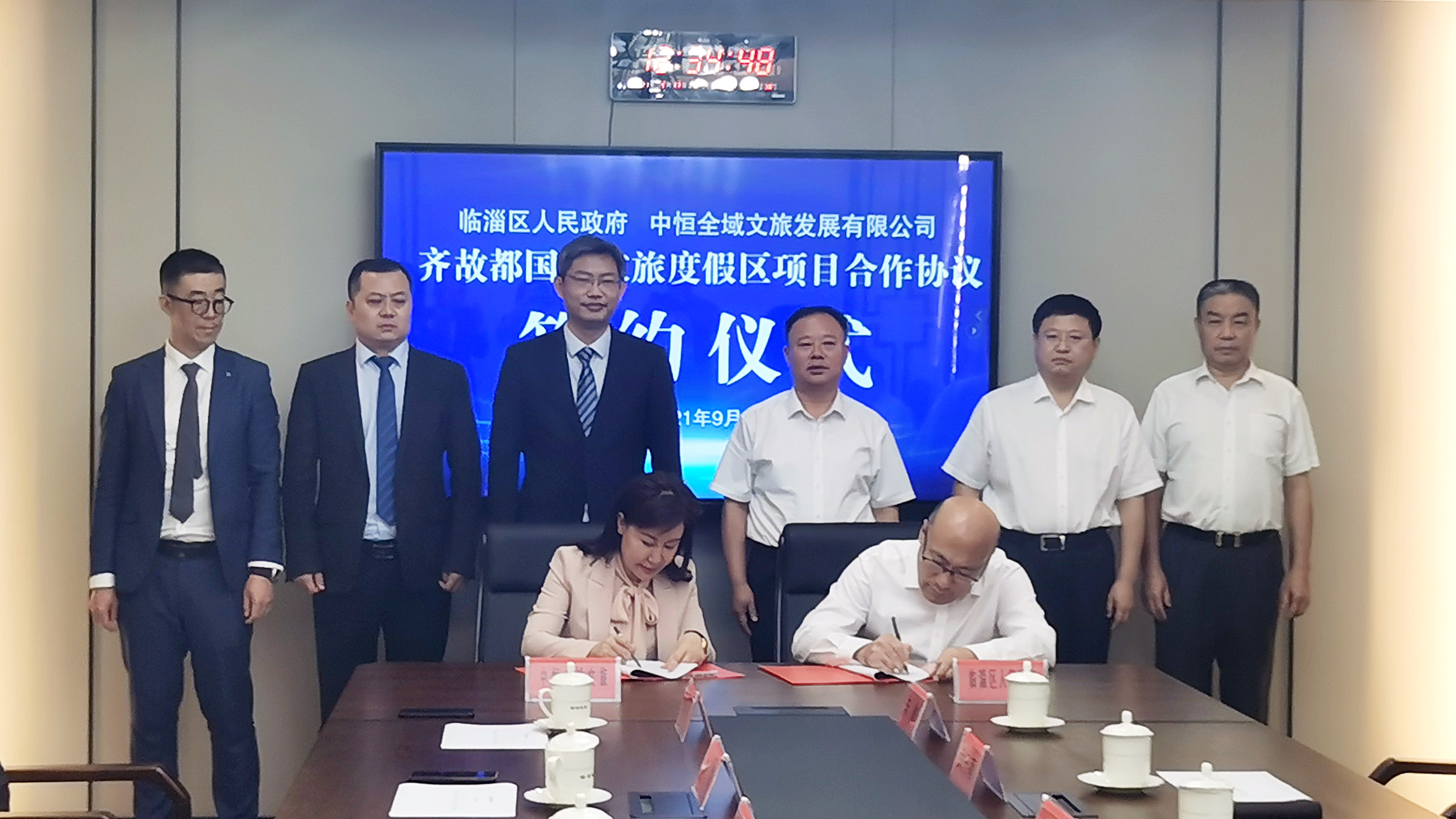 9月17日上午,齐故都国际文旅度假区项目签约仪式在山东省淄博市临淄区政府会议室顺利举行。临淄区区委书记朱正林,区委副书记、区长宋磊,区人大常委会副主任武守南,区政府副区长刘恩慧,区财政局局长王立才,区文旅局局长赵启敏,齐陵街道党工委书记朱冰,九合金控董事长徐玉岗等领导出席,集团董事长、中恒全域文旅发展有限公司董事长房小玲携项目成员一行五人出席本次签约仪式,并代表中恒全域文旅发展有限公司现场签约。